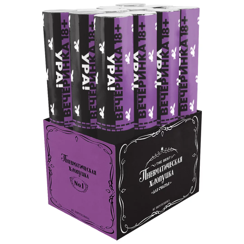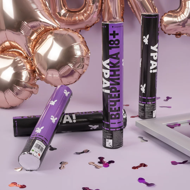 Пневмохлопушка (12/30 см), Плейбой 18+, Конфетти фольга, Фуше/Серебро, Металлик, 1 шт., 723010