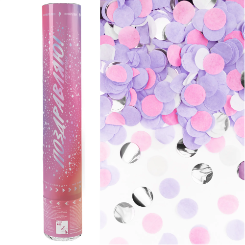 Пневмохлопушка (12/30 см), Поздравляю!, Круги фольга и тишью, Ассорти, 1 шт., 723036