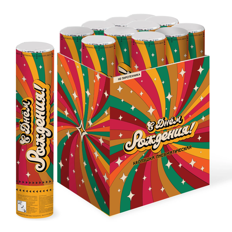 Пневмохлопушка с красочным конфетти сделает любой праздник ярче, а фото- и видео-съемку еще более эффектной