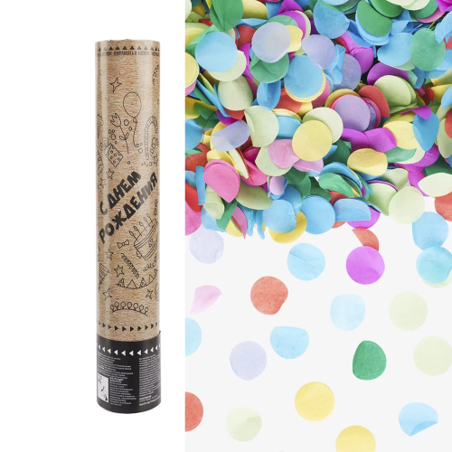 Пневмохлопушка (12/30 см), С Днем Рождения! (вечеринка), Круги тишью, Ассорти, 1 шт., 823149