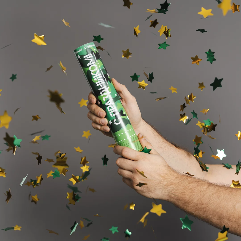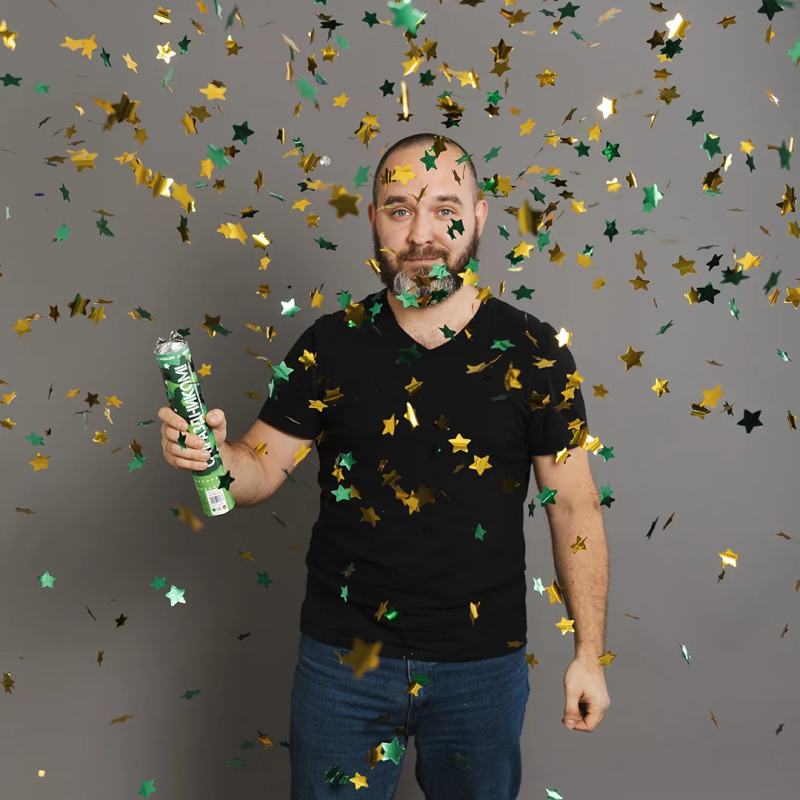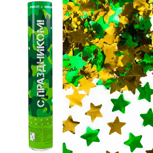 Пневмохлопушка (12/30 см), С Праздником!, Звезды фольга, Зеленый/Золото, 1 шт., 823187