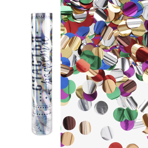 Пневмохлопушка (12/30 см), Счастья, Радости, Добра!, Круги фольга, Ассорти, Металлик, 1 шт., 823146
