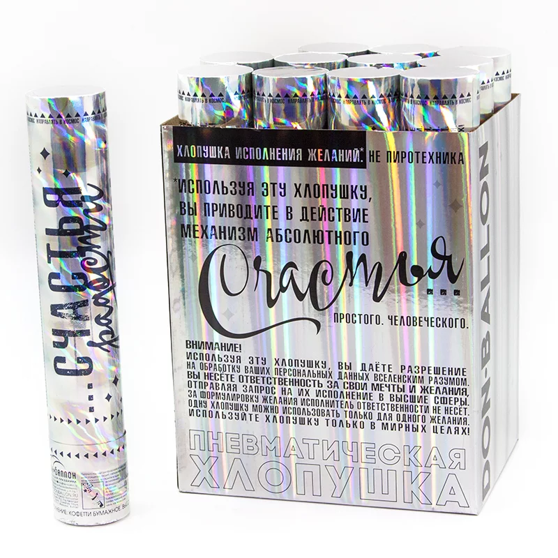 Пневмохлопушка с красочным конфетти сделает любой праздник ярче, а фото- и видео-съемку еще более эффектной
