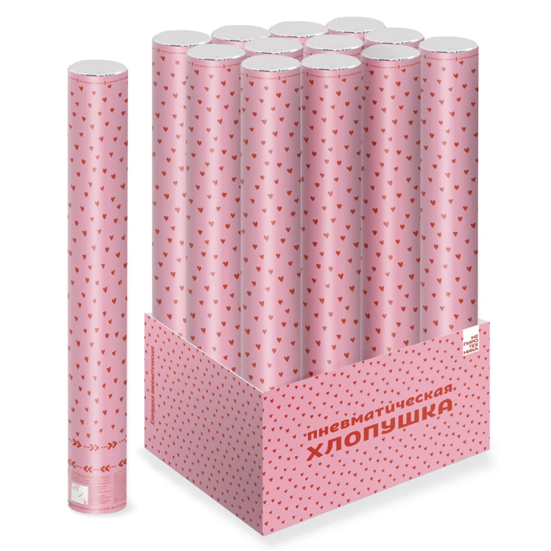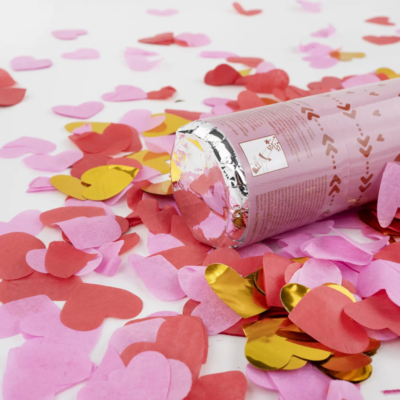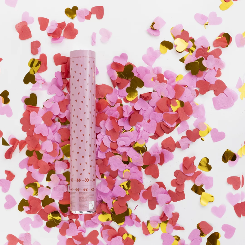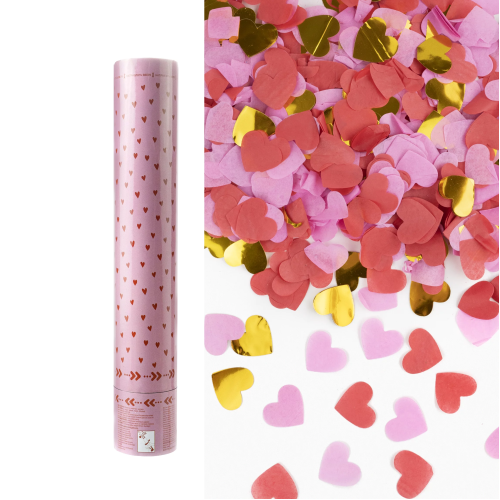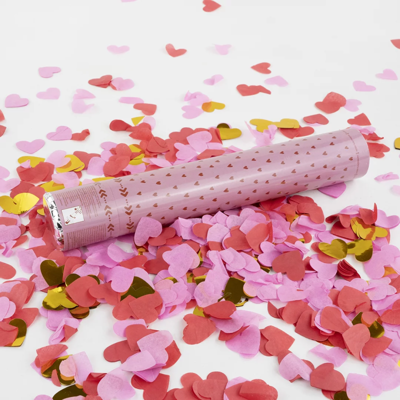 Пневмохлопушка (12/30 см), Сердца фольга и тишью, Красный/Розовый, 1 шт., 923003
