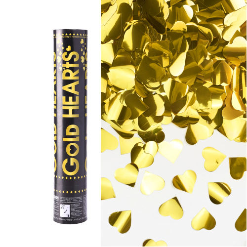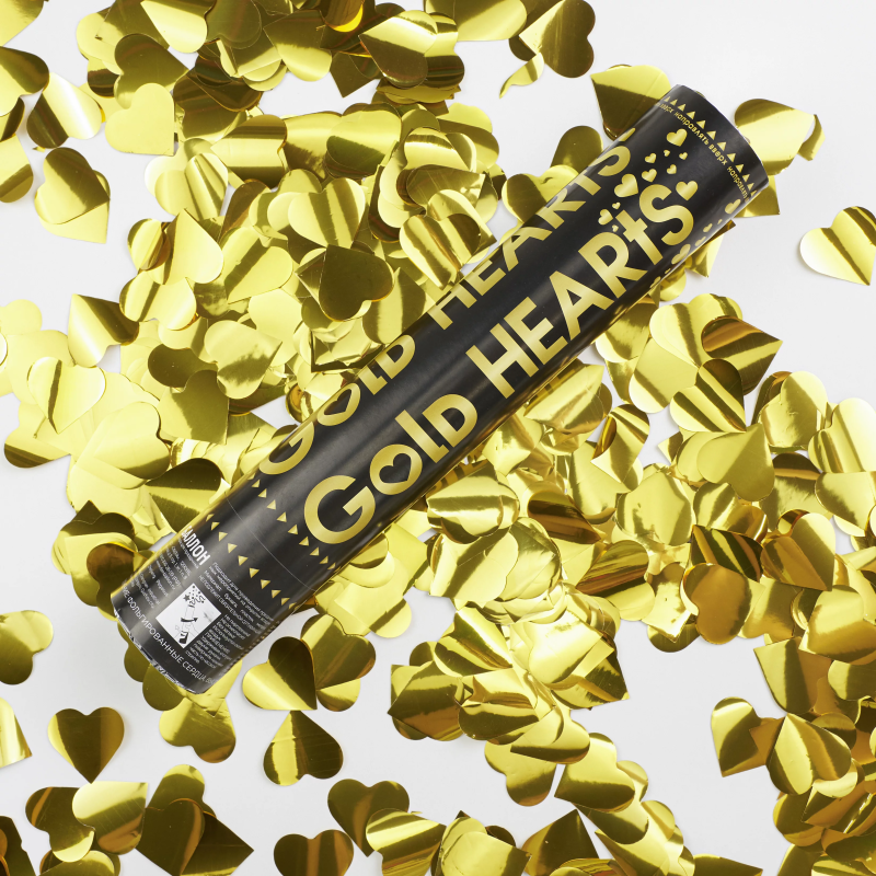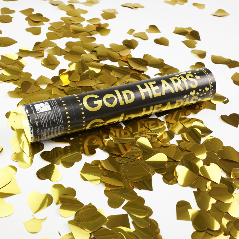 Пневмохлопушка (12/30 см), Сердца фольга, Золото, 1 шт., 823129