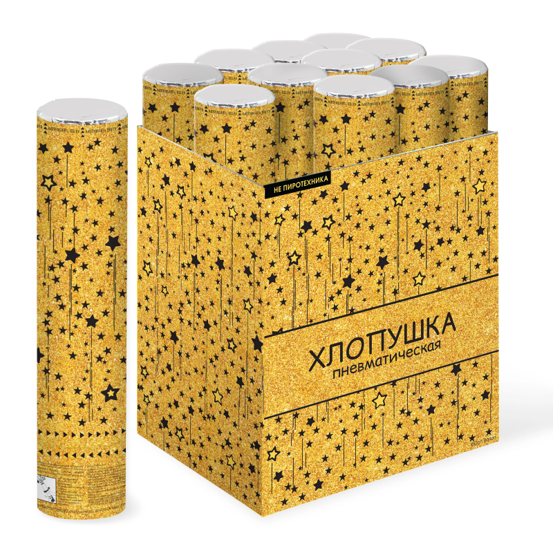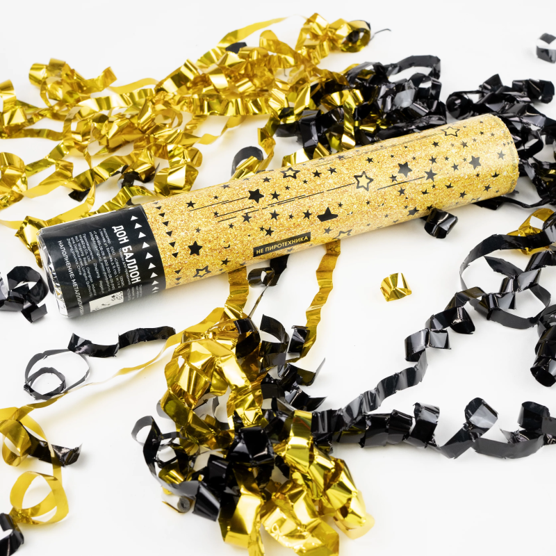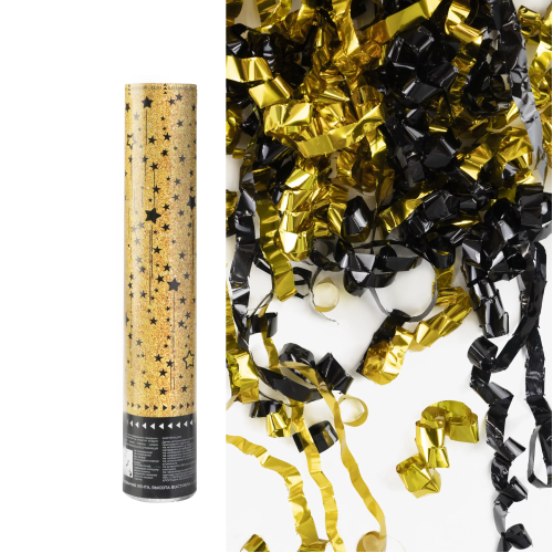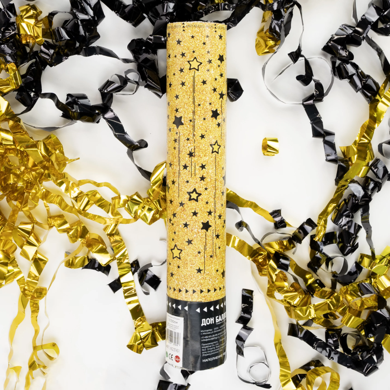 Пневмохлопушка (12/30 см), Звездный фейерверк, Серпантин фольга, Черный/Золото, 1 шт., 823161