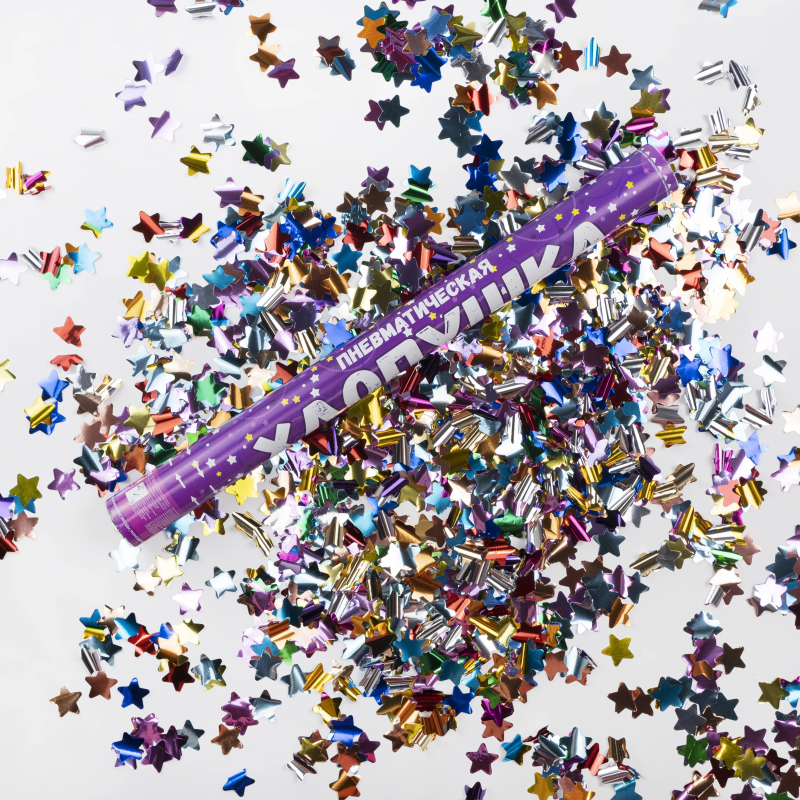 Пневмохлопушка с красочным конфетти сделает любой праздник ярче, а фото- и видео-съемку еще более эффектной