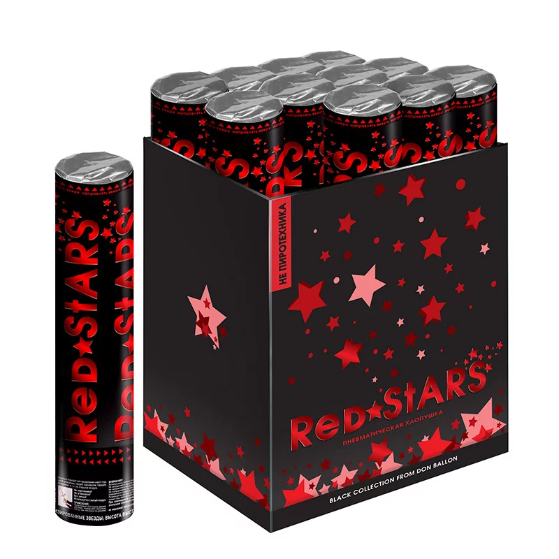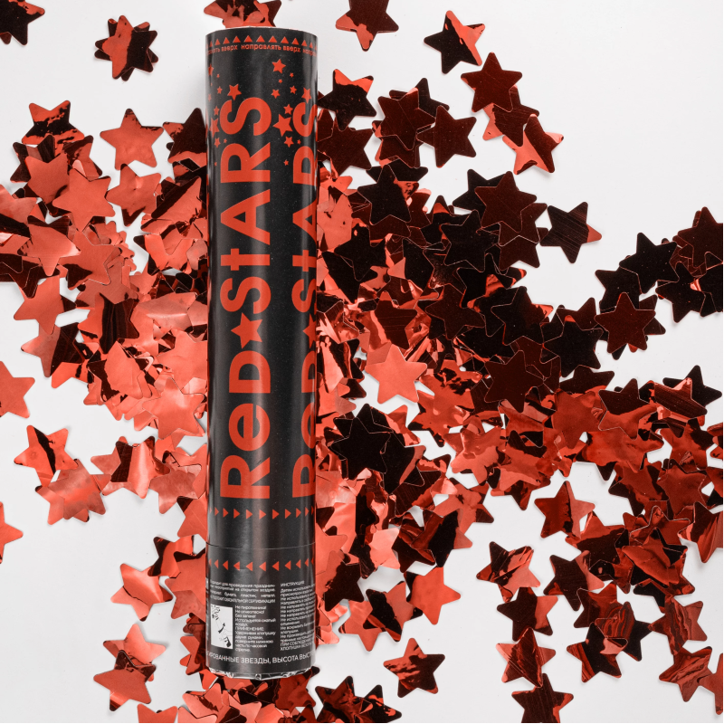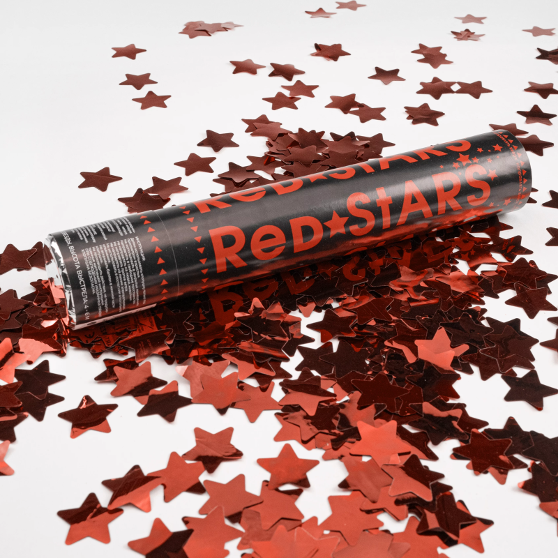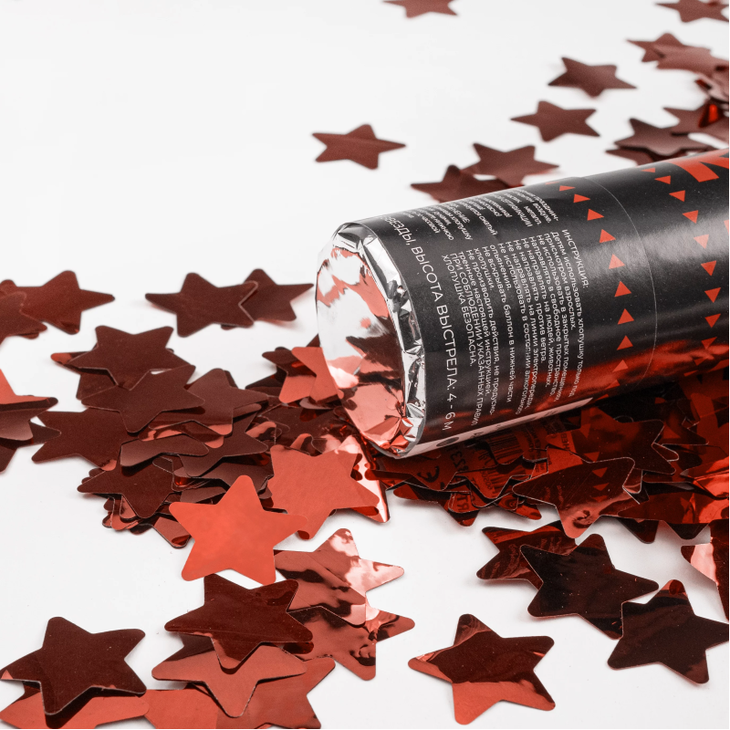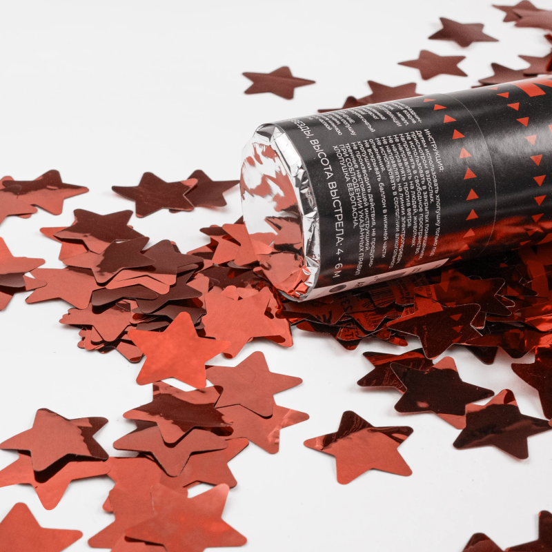 Пневмохлопушка (12/30 см), Звезды фольга, Красный, 1 шт., 823128