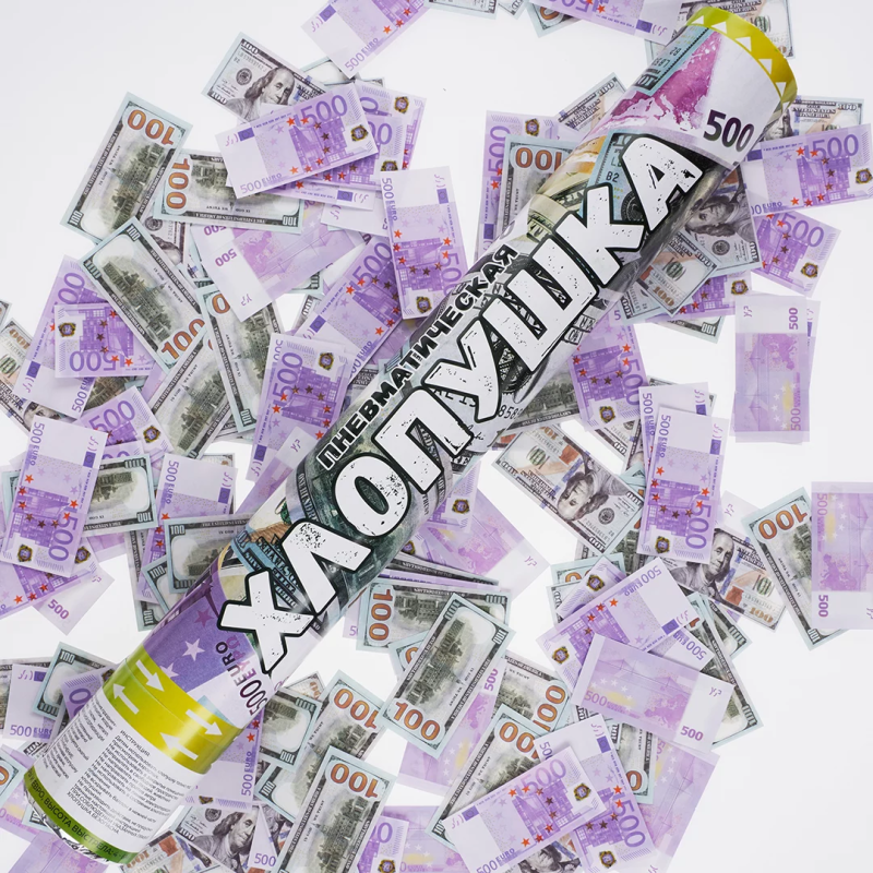 Пневмохлопушка (16/40 см), Деньги, Доллары и Евро, 1 шт., 8240Money