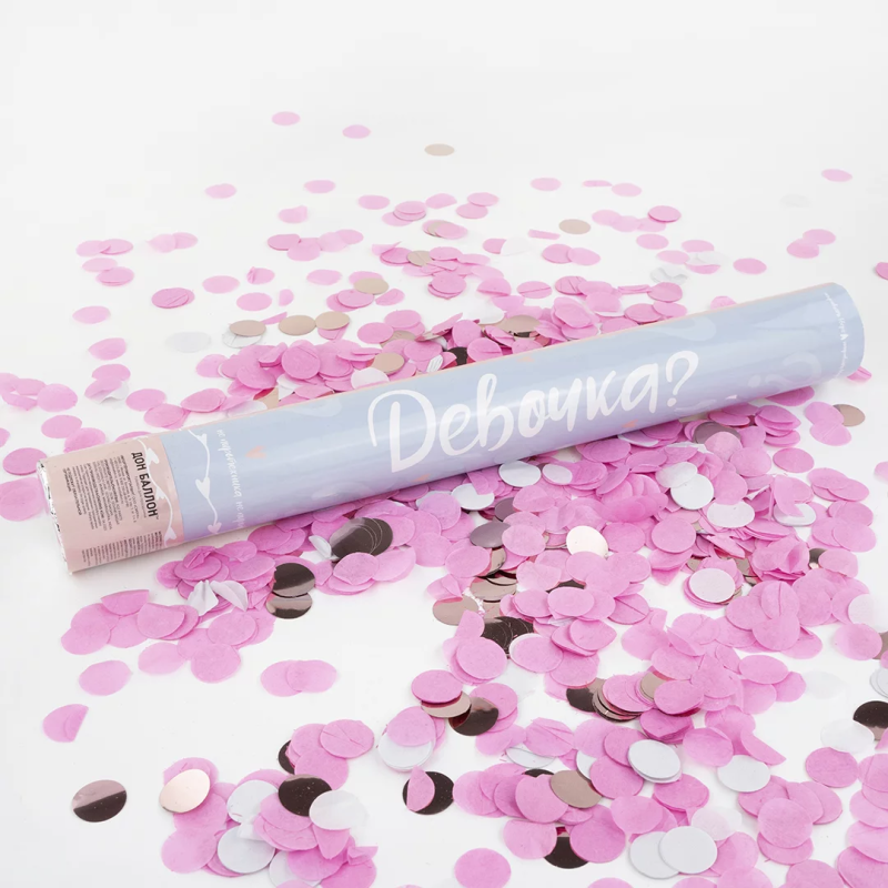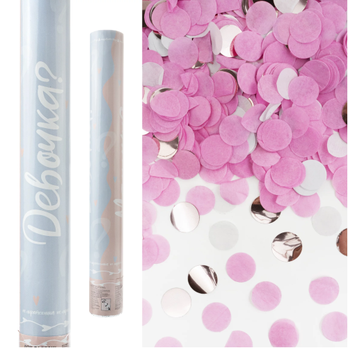 Пневмохлопушка (16/40 см), Гендер Пати, Это Девочка, Круги фольга и тишью, Белый/Розовый/Розовое зол, 923007