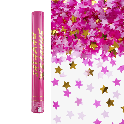 Пневмохлопушка (16/40 см), Загадай Желание, Звезды фольга и тишью, Розовый/Золото, 1 шт., 723012
