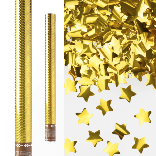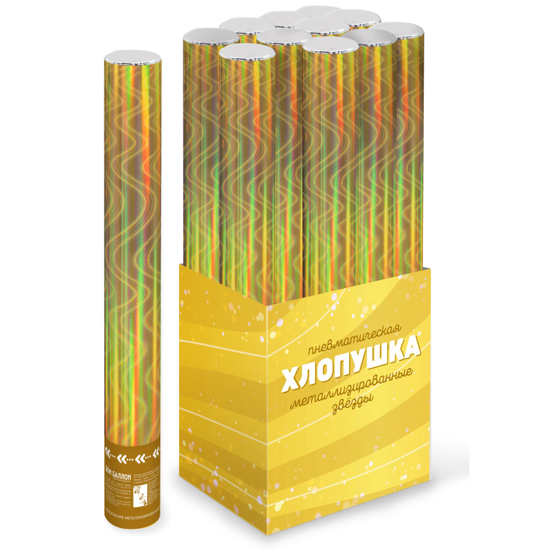 Пневмохлопушка (24/60 см), Волны, Звезды фольга, Золото, 1 шт., 823172