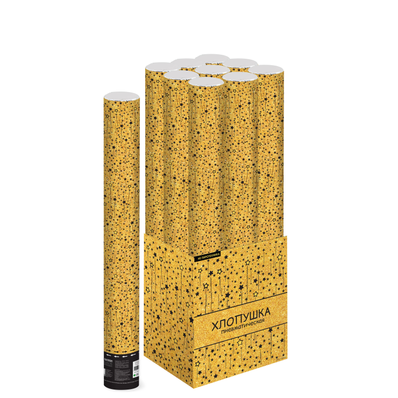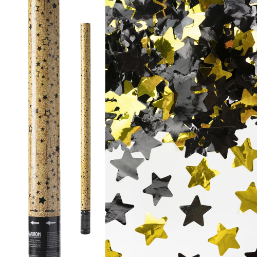 Пневмохлопушка (40/100 см), Звездный фейерверк, Звезды фольга, Черный/Золото, 1 шт., 823168
