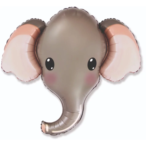 Шар (12''/30 см) Мини-фигура, Голова, Милый Слоник, Серый, 1 шт., 902805