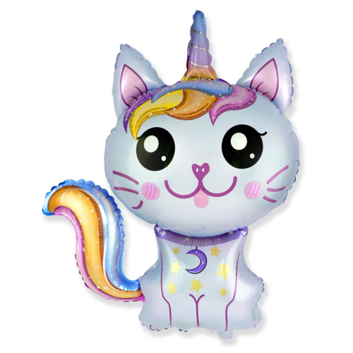 Шар (12''/30 см) Мини-фигура, Котенок Единорог, Голубой, 1 шт., 902797A