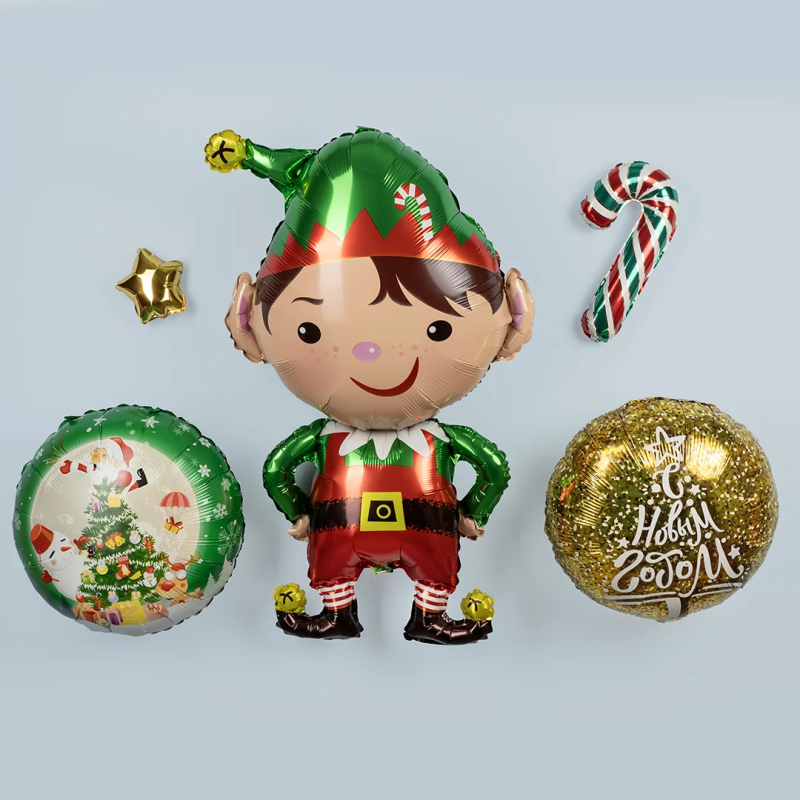 Шар (12''/30 см) Мини-фигура, Леденец трость, Красный/Зеленый, 1 шт., 902844VE