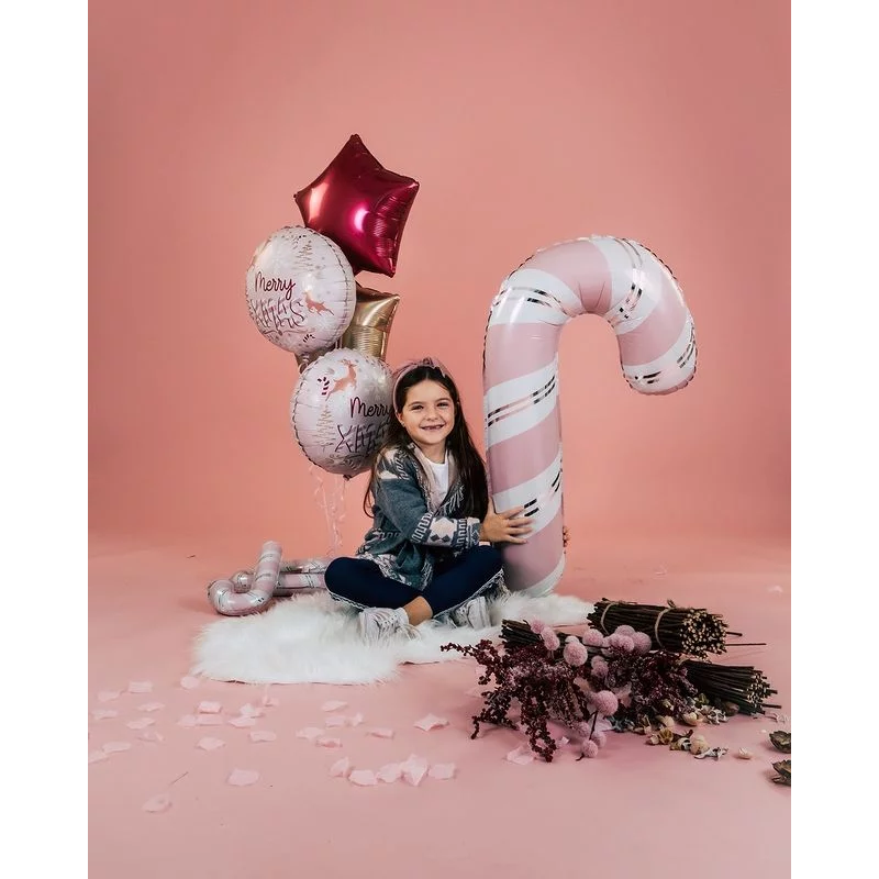 Шар (12''/30 см) Мини-фигура, Леденец трость, Розовый, 1 шт., G72095