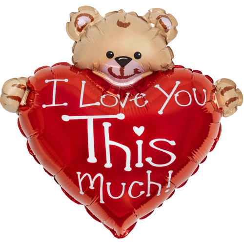 Шар (13''/33 см) Мини-сердце, Медвежонок с большим сердцем, Красный, 1 шт., 902715