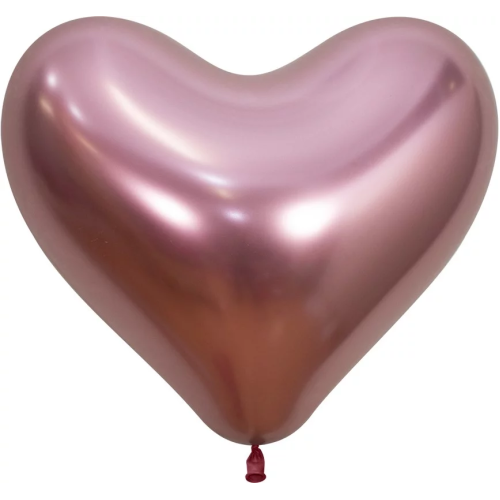 Шар (14''/36 см) Сердце, Зеркальный блеск, Розовый, хром, 50 шт.,
