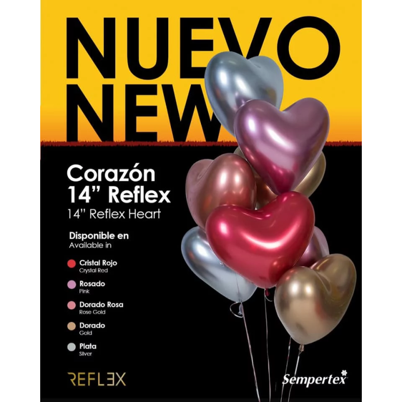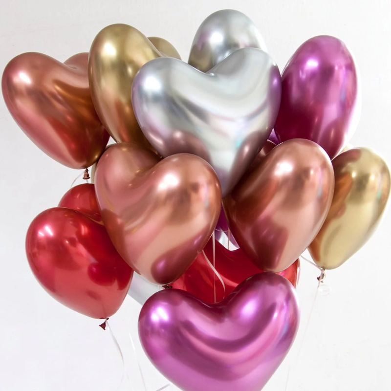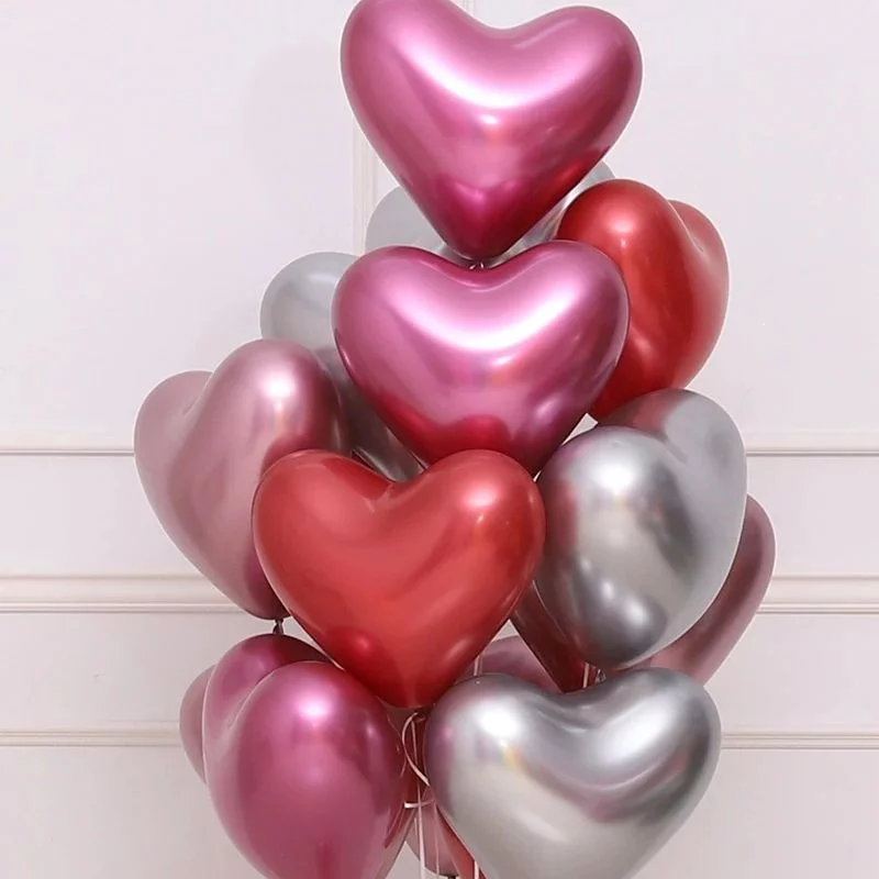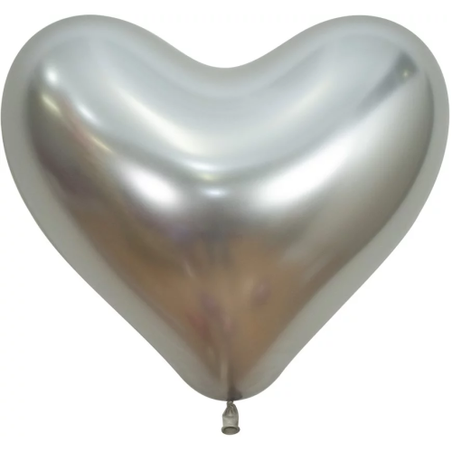 Шар (14''/36 см) Сердце, Зеркальный блеск, Серебро, хром, 50 шт.,