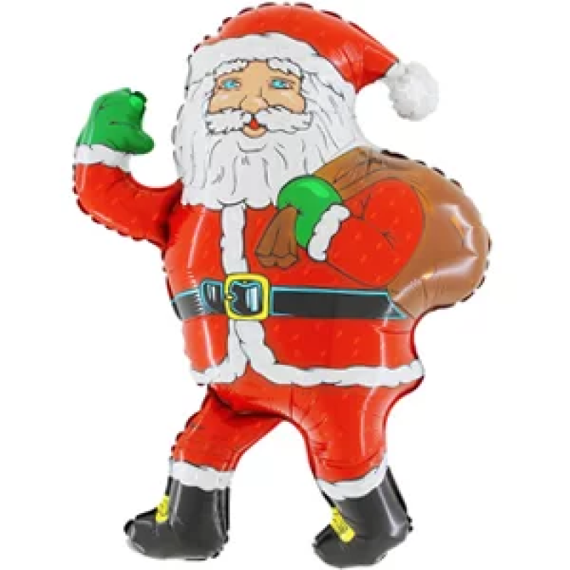 Шар (14''/36 см) Мини-фигура, Дед мороз с мешком, Красный, 1 шт., 902521