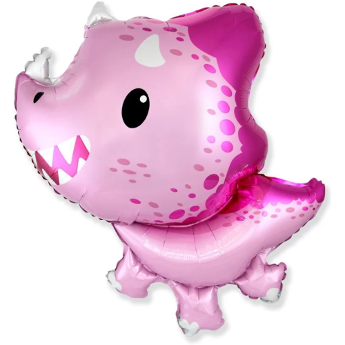Шар (14''/36 см) Мини-фигура, Динозаврик Трицератопс, Розовый, 1 шт., 902858RS