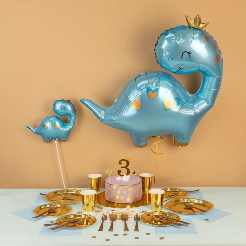 Шар (14''/36 см) Мини-фигура, Динозаврик в короне, Голубой, 1 шт., G72169