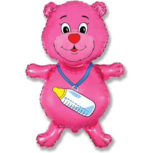 Шар (14''/36 см) Мини-фигура, Медвежонок-девочка, Розовый, 1 шт., 902648F