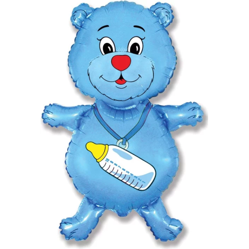Шар (14''/36 см) Мини-фигура, Медвежонок-мальчик, Голубой, 1 шт., 902648A