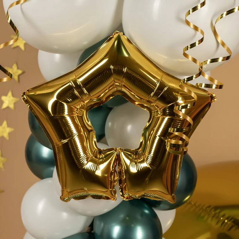Шар (14''/36 см) Мини-звезда, Контур, Золото, 1 шт., 902501O