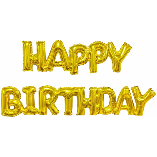 Шар (17''/43 см) Мини-фигура, Надпись "Happy Birthday", Золото, 1 шт. в уп., 26029