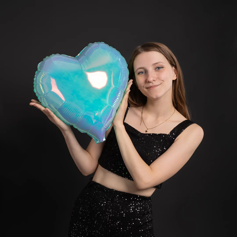 Шар (18''/46 см) Сердце, (надув воздухом), Голубой, Хамелеон, 1 шт. в уп.,