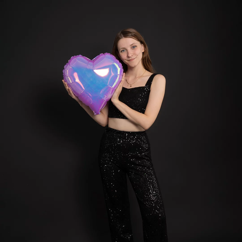 Шар (18''/46 см) Сердце, (надув воздухом), Сиреневый, Хамелеон, 1 шт. в уп.,