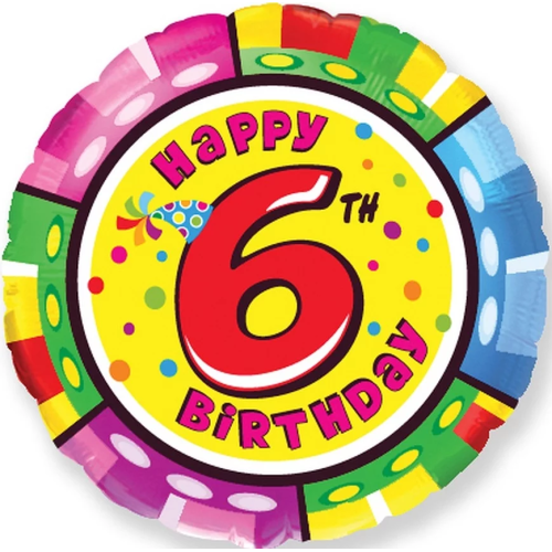 Шар (18''/46 см) Круг, 6 Цифра, Happy Birthday, 1 шт., 401575/6