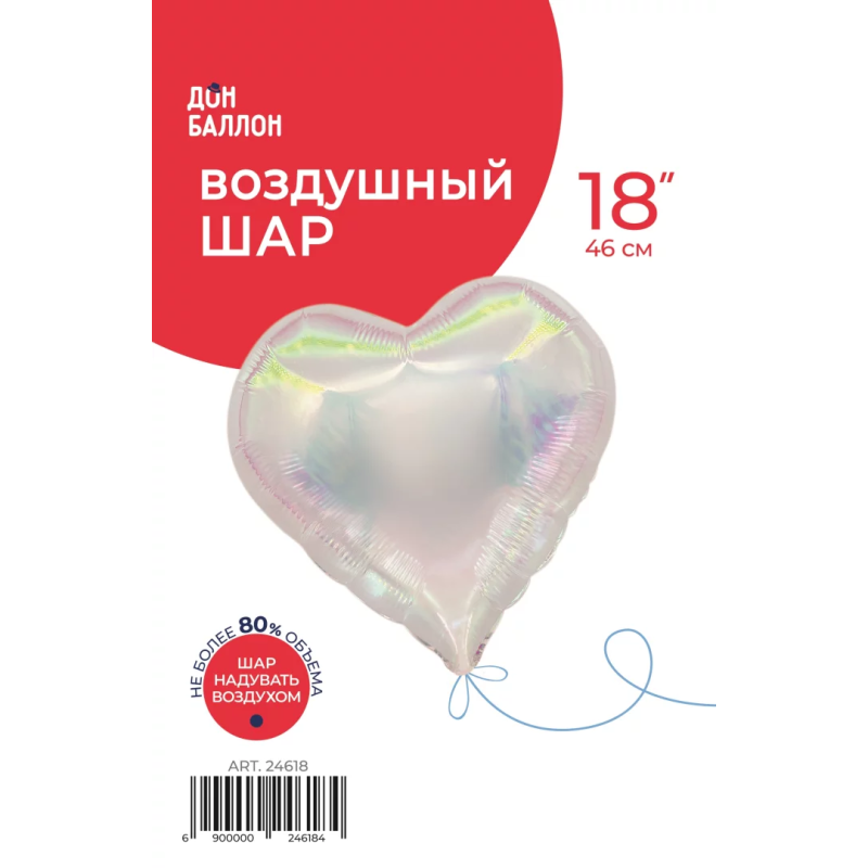Шар (18''/46 см) Сердце, (надув воздухом), Прозрачный, Хамелеон, 1 шт. в уп., 24618