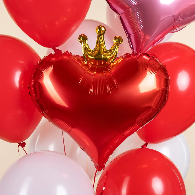 Шар (18''/46 см) Сердце, Золотая корона, Красный, 1 шт. в уп., 27339