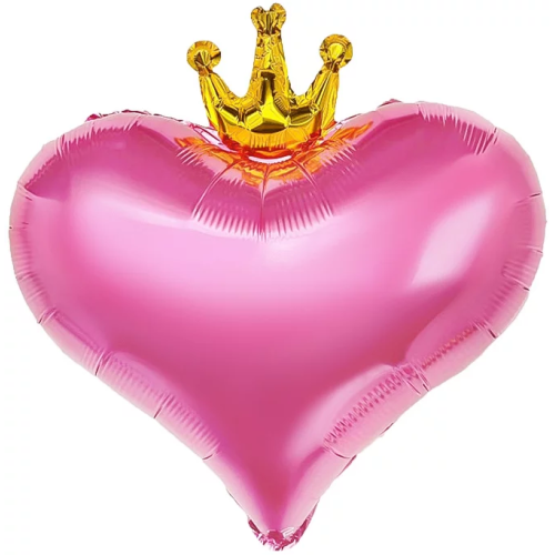 Шар (18''/46 см) Сердце, Золотая корона, Розовый, 1 шт. в уп., 27340