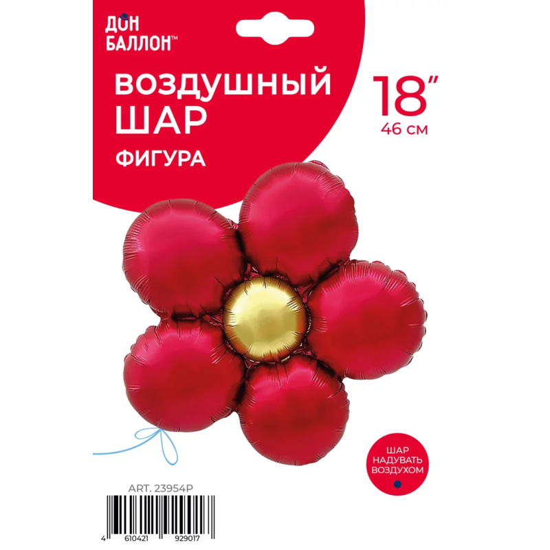Шар (18''/46 см) Цветок, Ромашка (надув воздухом), Красный, Сатин, 1 шт. в уп., 23954P