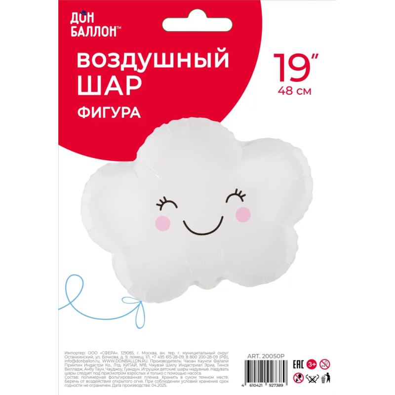 Шар (19''/48 см) Фигура, Счастливое облако, Белый, 1 шт. в уп., 20050P