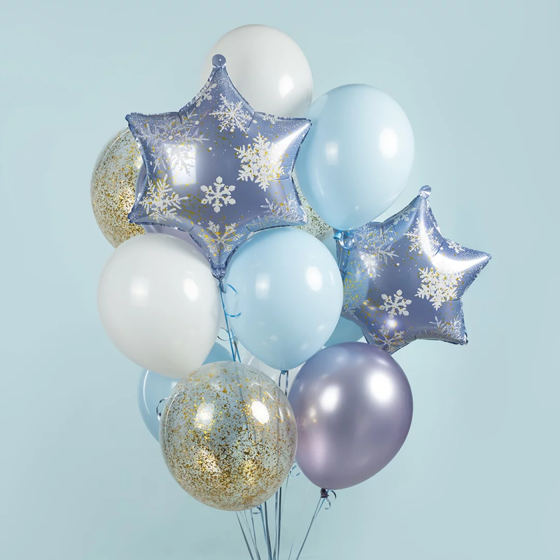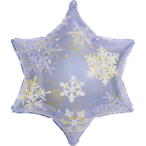 Шар (19''/48 см) Фигура, Снежинка, Морозные искры, Голубой/Золото, 1 шт. в уп., 26341G