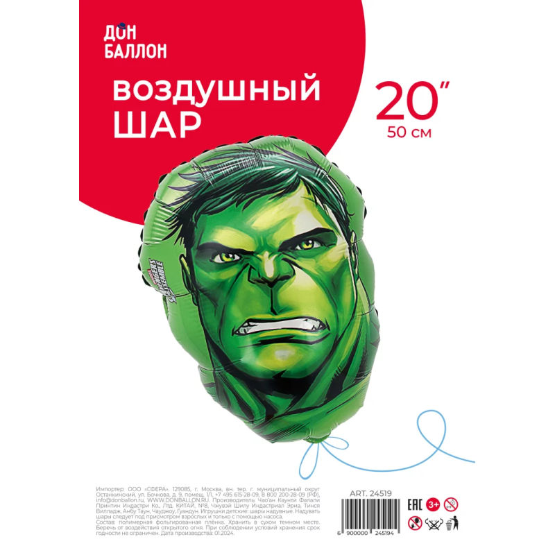 Шар (20''/51 см) Фигура, Голова, Герой Монстр, 1 шт. в уп., 24519