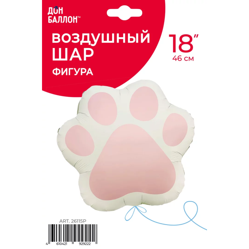 Шар (21''/53 см) Фигура, Лапка, Розовый, Сатин, 1 шт. в уп., 26115P