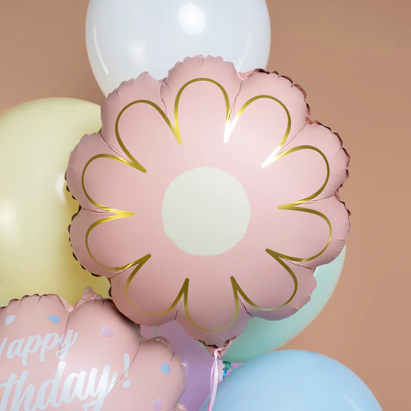 Шар (21''/53 см) Цветок, Ромашка, Золотые лепестки, Розовый, Сатин, 1 шт., 26823