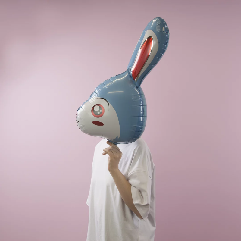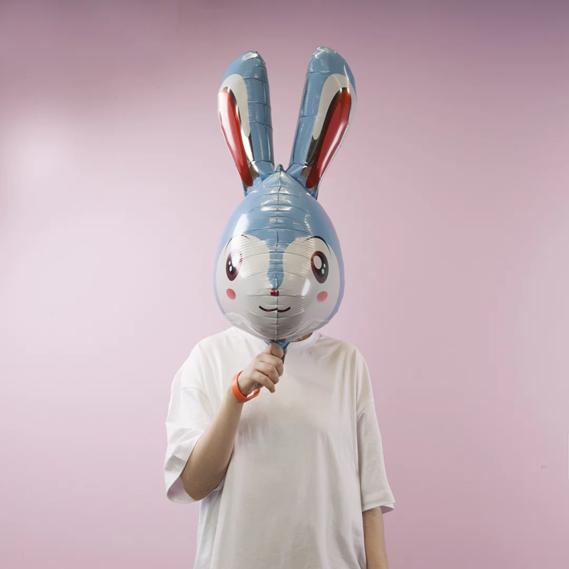 Шар (22''/56 см) Фигура, 3D Голова, Заяц (надув воздухом), Голубой, 1 шт., 19632