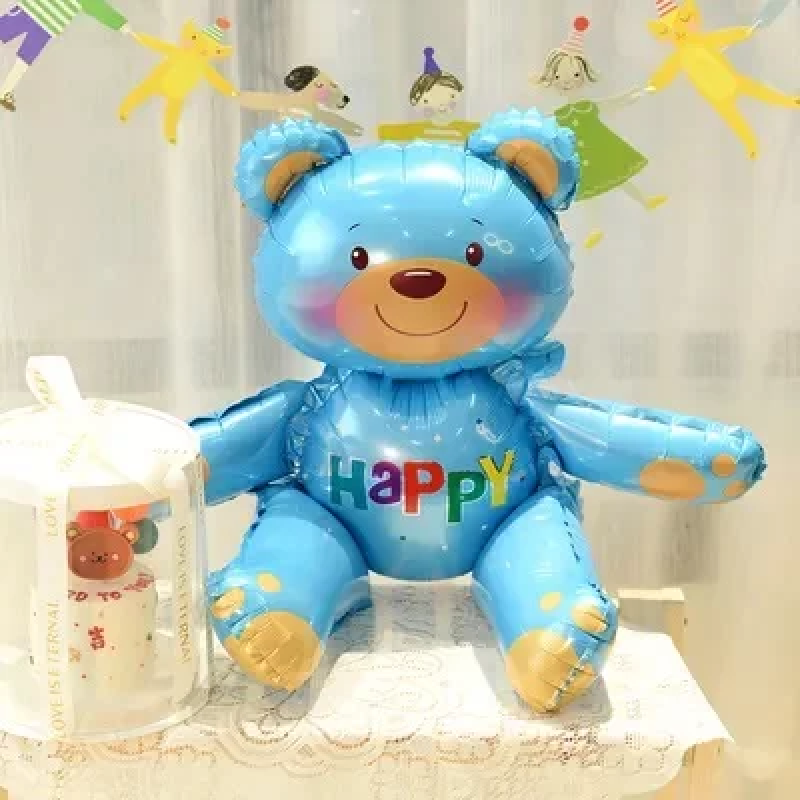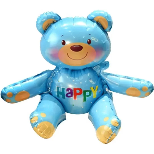 Шар (22''/56 см) Фигура 3D, Сидячий мишка, Голубой, 1 шт. в уп., 23202