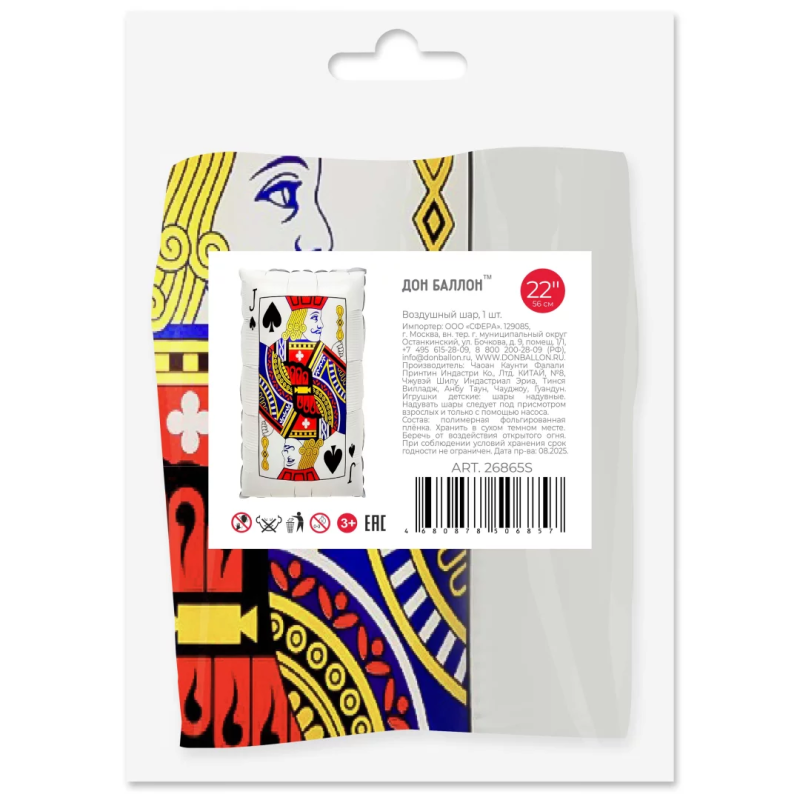 Шар (22''/56 см) Фигура, Покер, Карта Валет Пик, 1 шт. в уп. (цв.этик.), 26865S