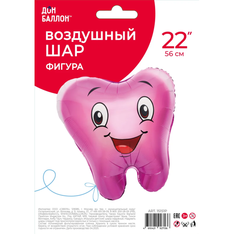 Шар (22''/56 см) Фигура, Зубик, Розовый, 1 шт. в уп., 15151P