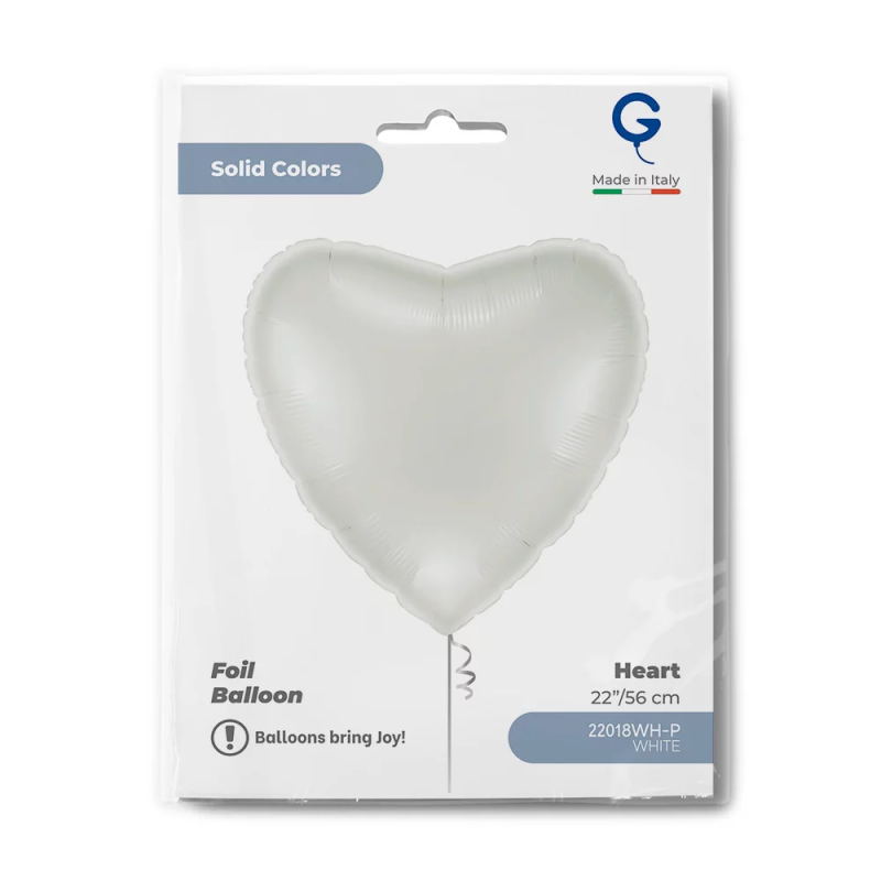 Шар (22''/56 см) Сердце, Белый, 1 шт. в уп., 22018WH-P