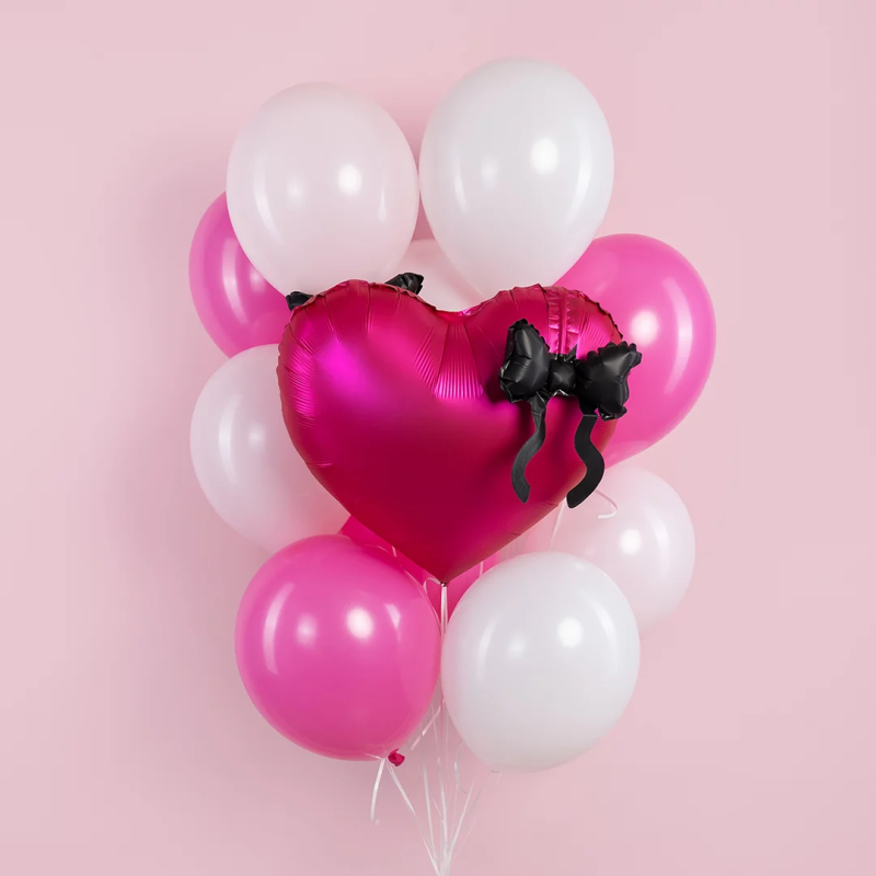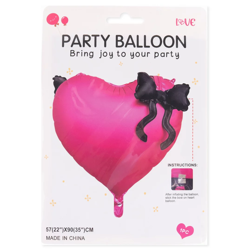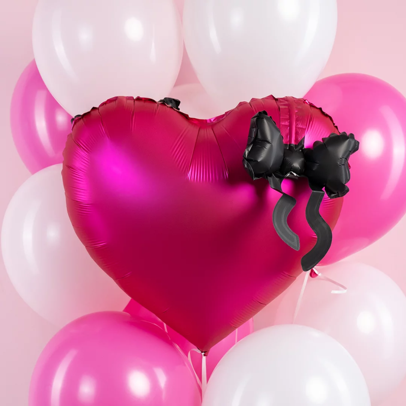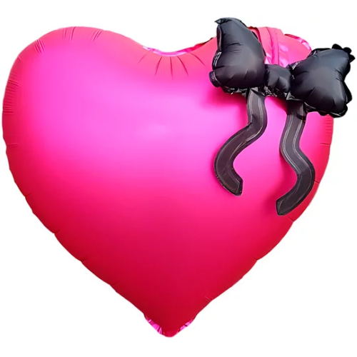 Шар (22''/56 см) Сердце, Черный бант, Фуше, Сатин, 1 шт. в уп., 27455