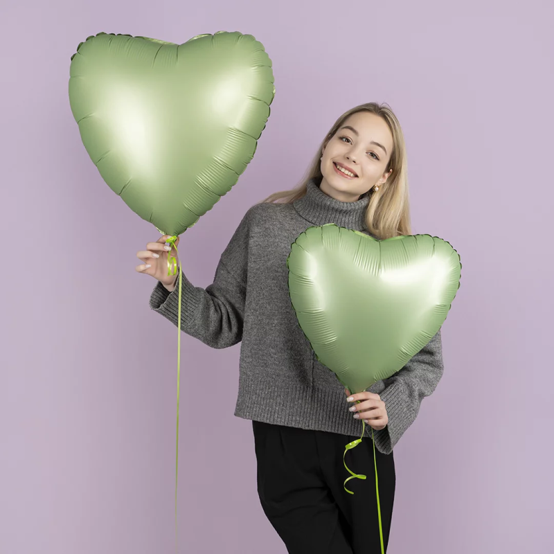 Шар (22''/56 см) Сердце, Оливковый, Сатин, 1 шт., 220000SOGR